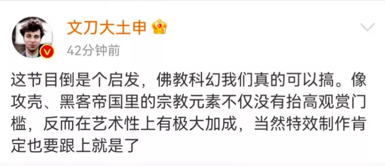 當然,也不是所有人都不能接受。在另一些人看來,“佛教科幻”是一種雜交實驗,不能因為怪,就把它一票否決了。