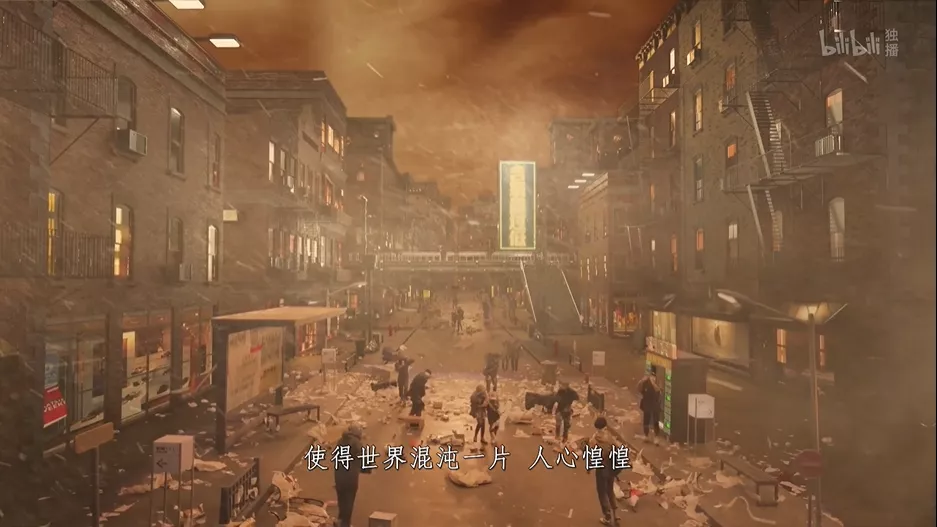 多年之後,黃沙漫天,高樓林立,街上的人們倉皇逃竄。原來是環境被嚴重污染,空氣變得無法呼吸,人類即將面臨滅絕——妥妥的末世。