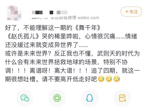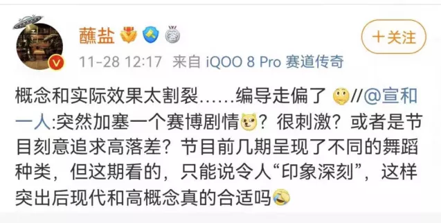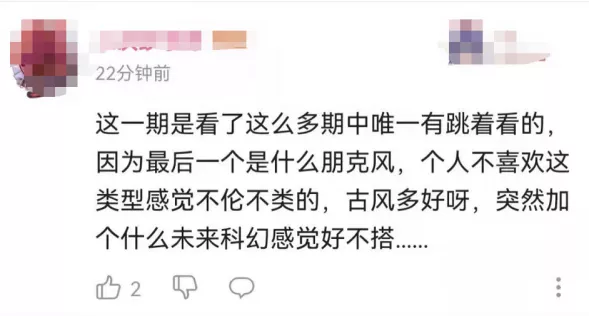 節目下面的評論,一開始評論還停留在説“突兀”: