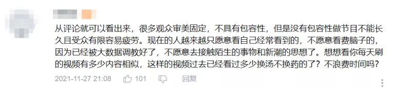 甚至在B站裏節目的評論區,原本《舞千年》的粉絲都有點無法接受,有人大呼:“這舞配不上《舞千年》!”