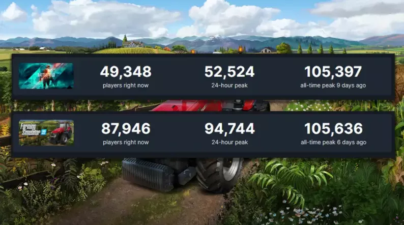 《模擬農場22》的在線人數近乎是《戰地2042》的兩倍