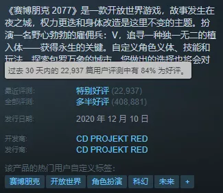 最近,Steam秋季特惠正在進行中,不少老遊戲也藉着這股打折熱潮重新出現在了銷量榜單中,像是《賽博朋克2077》《荒野大鏢客2》這些過去的話題大作在最近也收穫了不少新的好評。