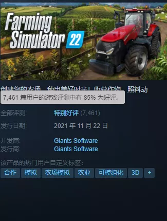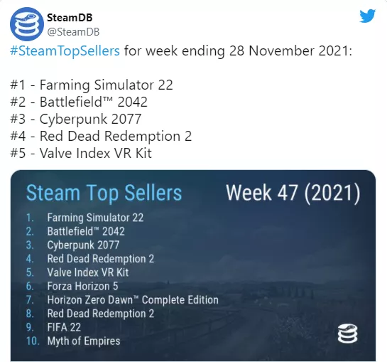 《模擬農場22》超越《戰地2042》,成了上週Steam最流行的遊戲_風聞