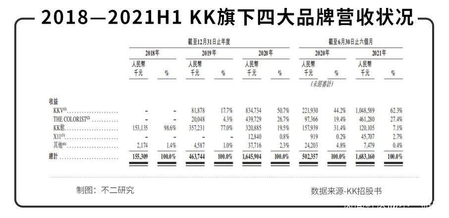 「不二研究」注意到,從2020年下半年開始,KK進入了高速發展期。2020年下半年,KK營收高達1.14億元,佔全年比重達69.48%,較2020年上半年增長127.64%。