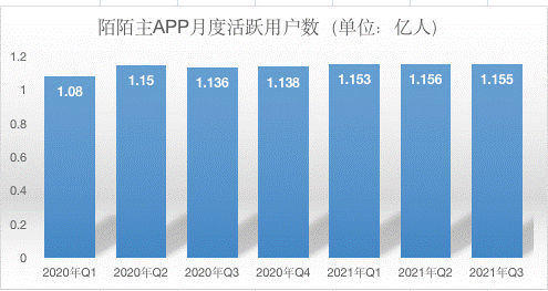 月活用户規模方面,據財報截至2021年9月,陌陌主App月度活躍用户為1.155億,2021年第三季度,直播服務與增值服務付費用户去重後總數達1220萬。