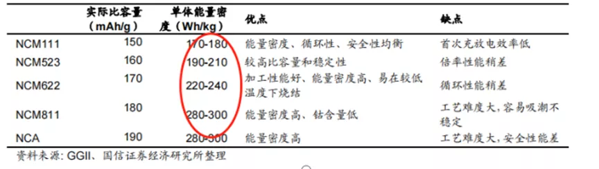 目前國內的三元鋰電池能量密度可達200Wh/kg以上,而磷酸鐵鋰電池能量密度上限約為180Wh/kg。