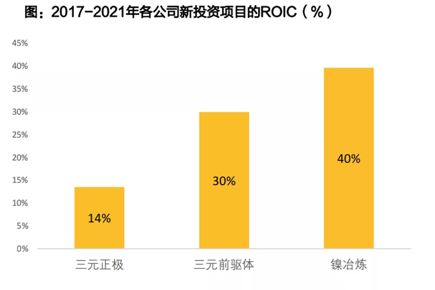 在正極產業鏈條中,鎳資源無疑是利潤最豐厚的環節,其次便是三元前驅體,從資本回報率(ROIC)可以清晰看出三者的差異。