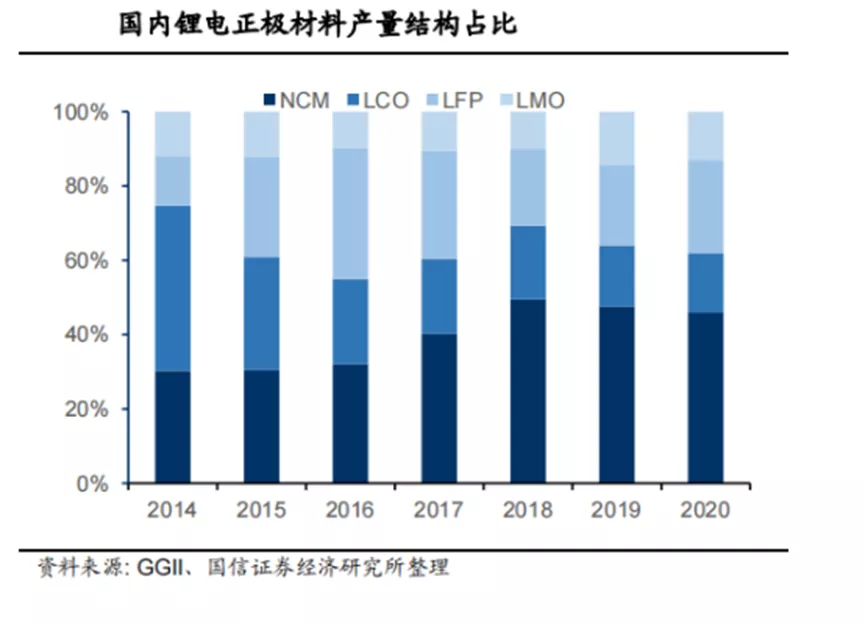 細分起來,正極材料有五大類,主要包括磷酸鐵鋰(LFP)、鎳鈷錳酸鋰(三元材料、NCM)、錳酸鋰、鈷酸鋰、鎳鈷鋁酸鋰。