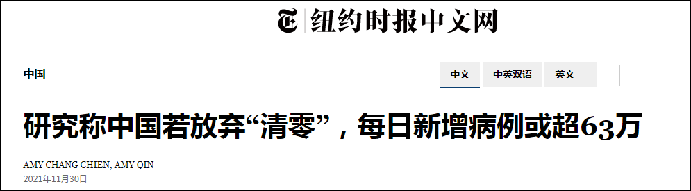 《紐約時報》對中國“清零”政策的態度轉變有多大呢?