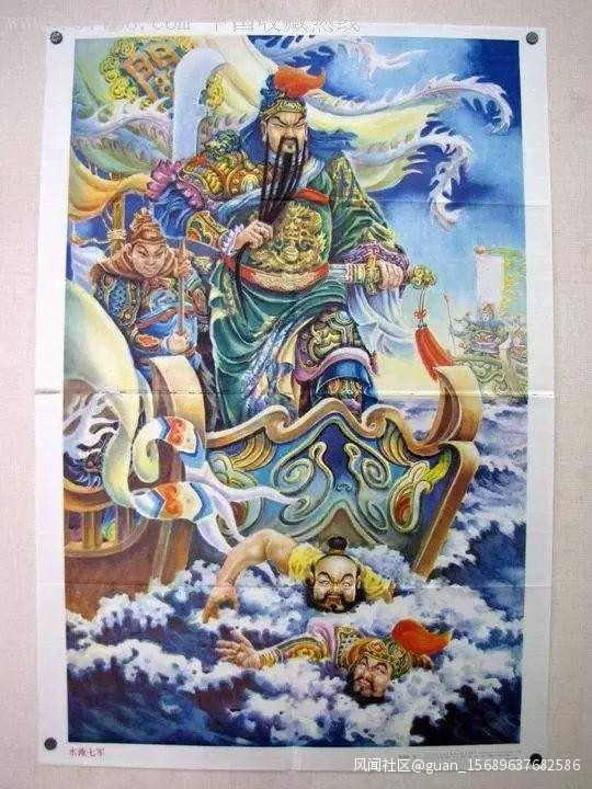 關羽一看,大喜。這江漢平原川澤密佈,草木繁盛,年年飽受洪水氾濫之害(注7)。魏人明知如此,卻不備船隻,不練水軍,今日嚐到苦楚了吧,於是率領水軍開着大船,直接駛入城中。于禁三萬將士都成了水災難民,紛紛登高避洪,一個個如落湯雞般被分割在水中一個個小高地上,軍資也損失殆盡,是打又不能打,跑也跑不掉,躲也沒處躲。蜀軍乃變身海軍陸戰隊與抗洪救災隊,有的坐上小艇,登陸高地殲滅頑抗者;有的則唱着船歌,將水裏的曹軍將士一個個撈上船繳械俘虜。這仗打的,還真是別有一番情趣。