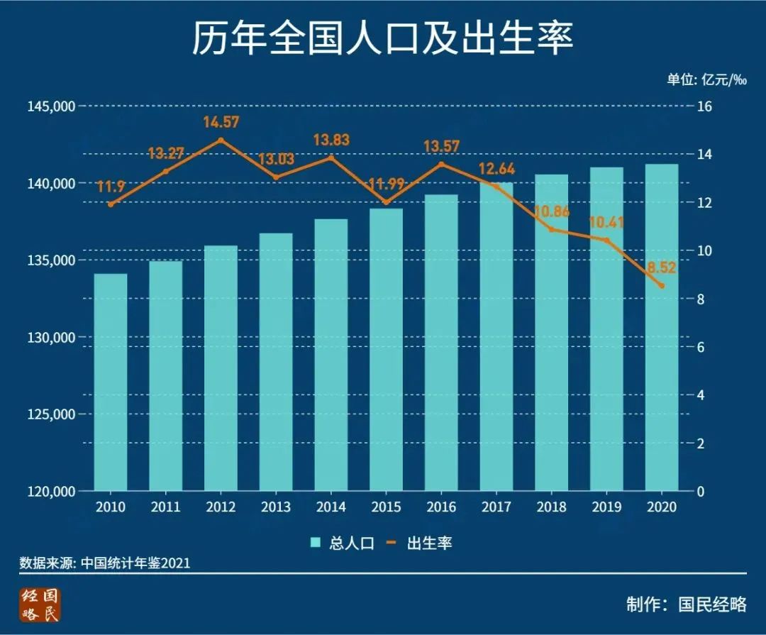 11月20日,根據最新出版的《中國統計年鑑2021》顯示,2020年全國人口出生率為8.52‰,首次跌破1%,創下了1978年以來的新低。