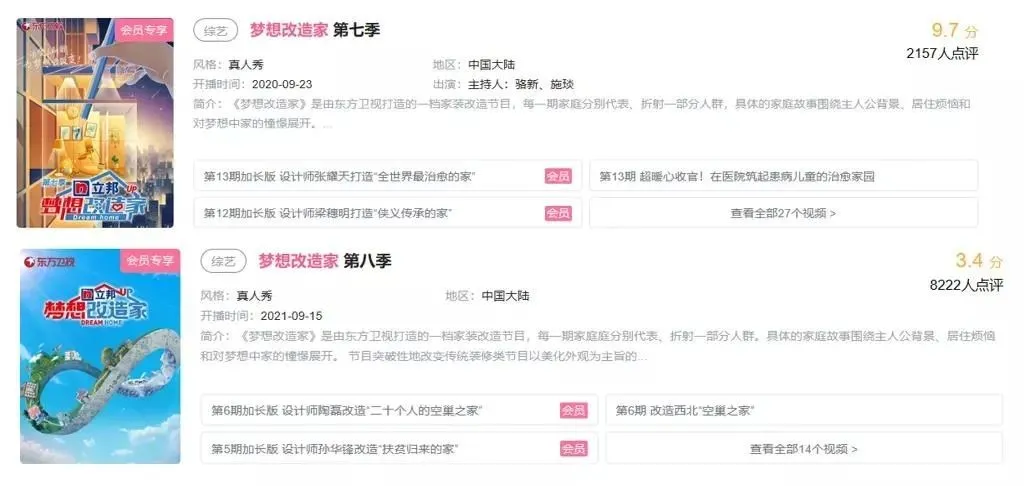而《夢想改造家》的評分更是因為這期節目翻車一路跌至3.4分,此前,這檔節目可一直都保持着9分以上的高水準。