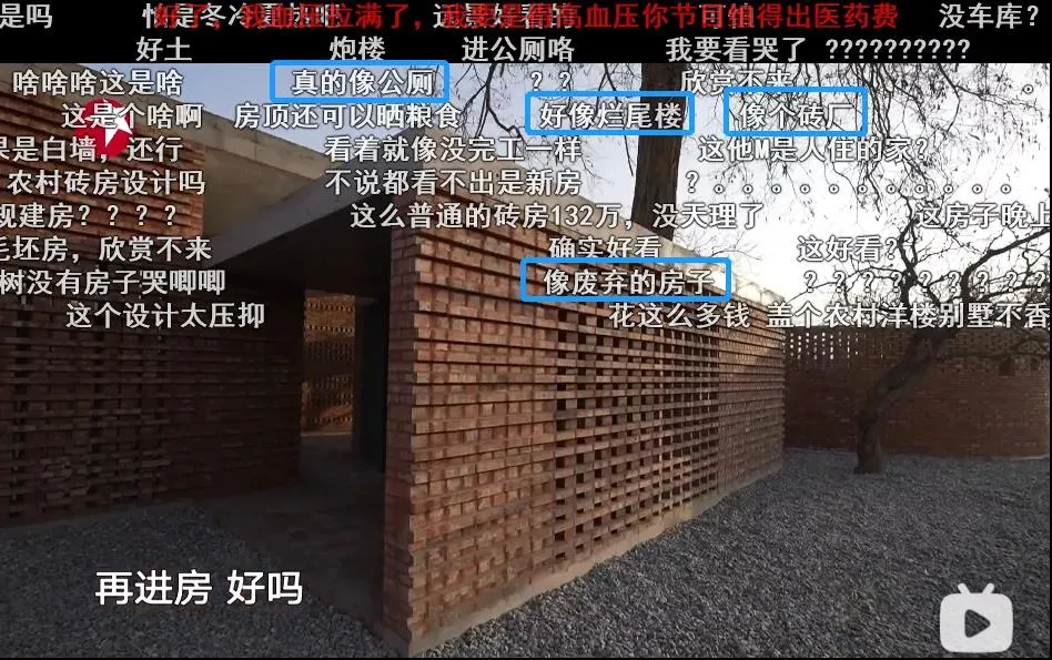 當時彈幕裏有説像磚廠的,有説像爛尾樓的,還有説像公廁的,像廢棄的房子的。