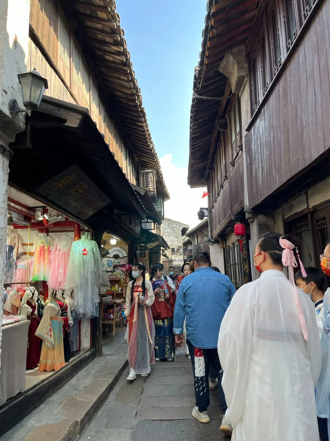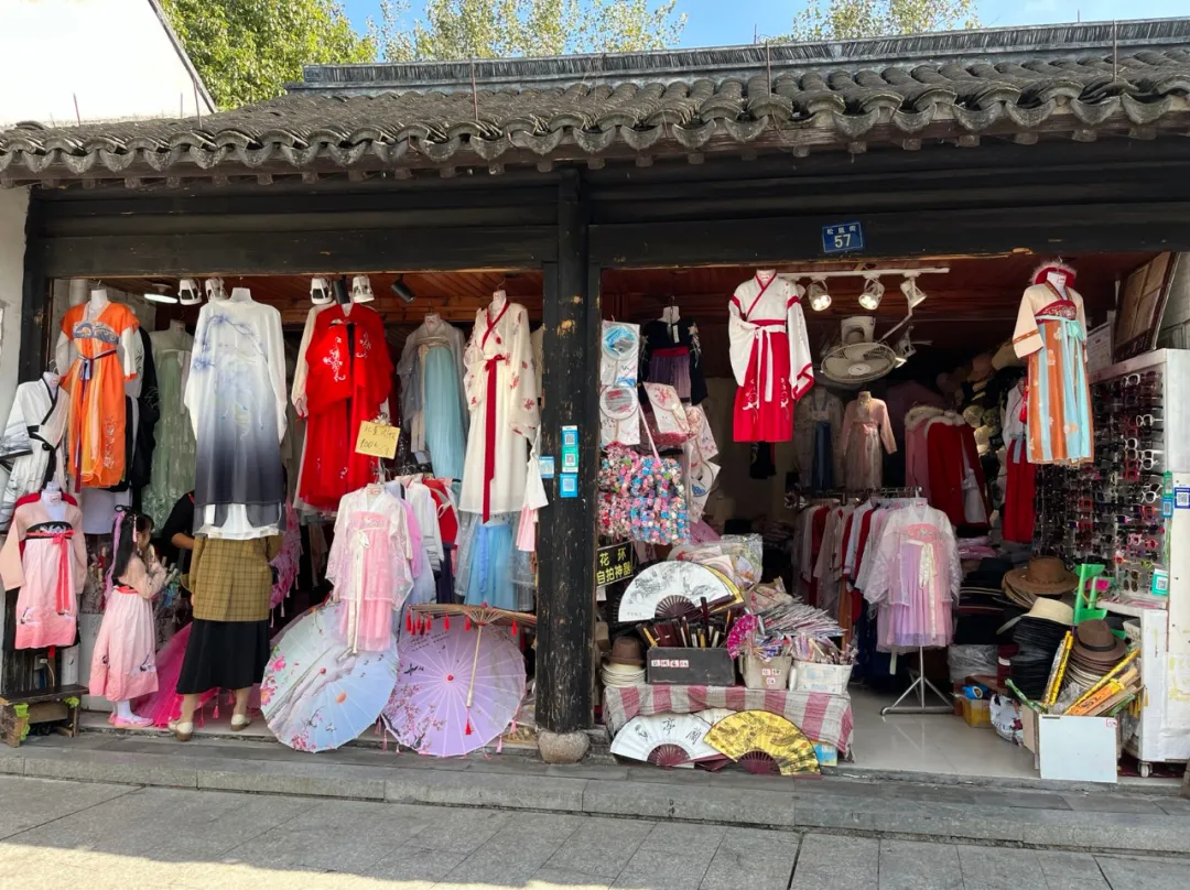 最為常見的應該是景區內一排排漢服專賣店,店內提供明制、宋制等傳統文化的絲綢、旗袍以及漢服這樣的商品。