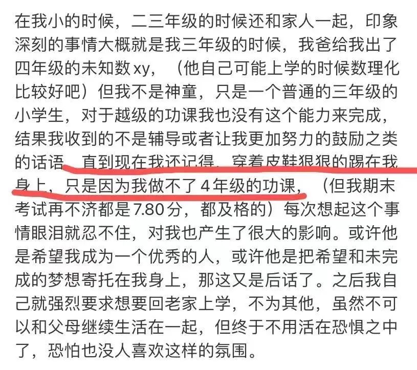 當我想了解他更多,去翻看他以前的微博才知道,“那一腳”是小學三年級時,爸爸穿着皮鞋踢他的一腳。