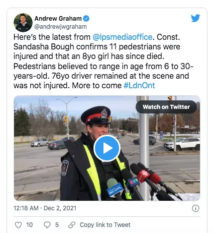 加拿大女童軍向媒體證實,事故中的行人中包括其成員;但他們並沒有説明傷者人數、年齡和傷勢情況。