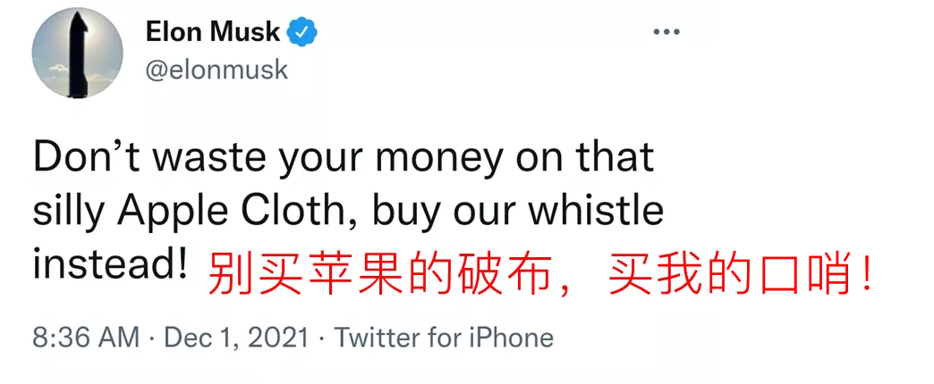 大家想想,作為世界首富馬斯克,為啥他突然花裏胡哨地搞出個哨子賣呢?你説是為了賺錢。**但他賺錢為啥不賣別的,而是賣哨子呢?**顯然,這個哨子大有寓意。