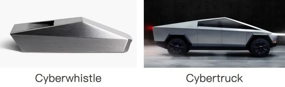 這款哨子名叫Cyberwhistle賽博口哨,靈感來源於特斯拉發佈的電動皮卡Cybertruck。看這造型,是Beyond來了都要説一樣的程度。