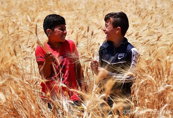 6月6日,敍利亞兒童站在首都大馬士革的一處麥田裏。新華社發(阿馬爾·薩法爾賈拉尼攝)