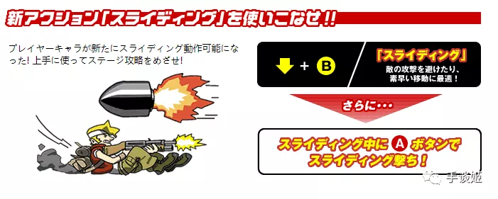 與前作相比,**《合金彈頭5》新增了動作“滑鏟”,**遇到強大的敵人和飛來的子彈,能否善用這一動作,往往是區分你是投幣玩家,還是街機店老闆討厭的玩家的關鍵。