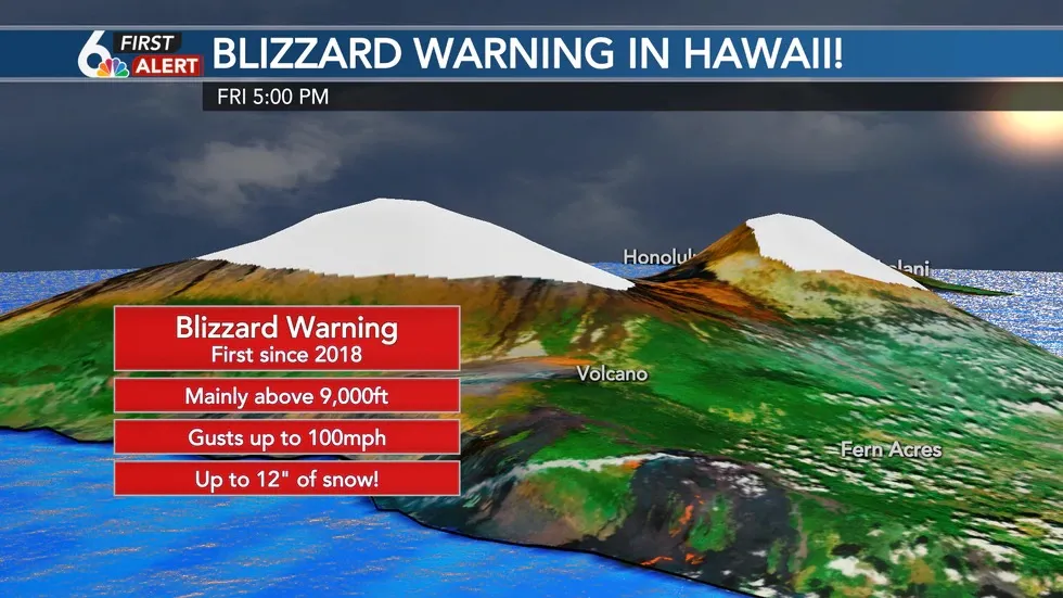 據報道,本週末夏威夷預計將迎來一場暴風雪,預計風速將超過每小時100英里,降雪將達到12 英寸。