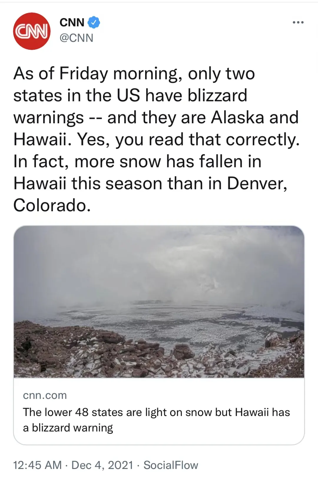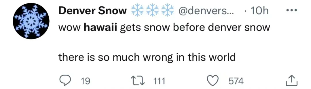 天,夏威夷比丹佛更早迎來雪,這個世界到底出什麼錯了。