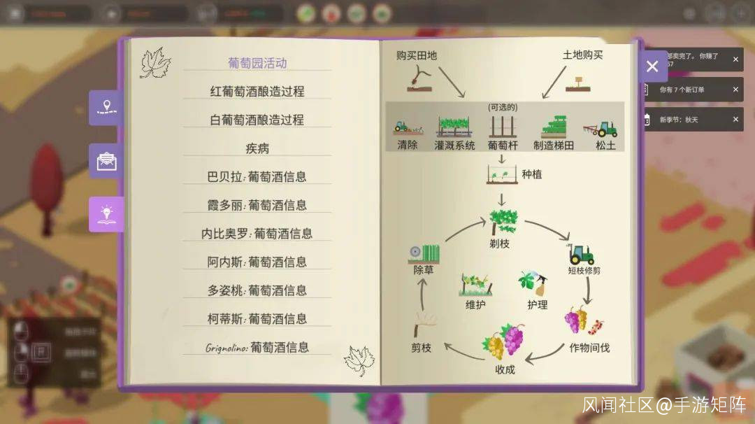 該作是真實還原模擬經營葡萄酒莊園的遊戲,在遊戲中,玩家會學習到葡萄酒釀造的全過程,從選擇葡萄和葡萄藤品種,到給葡萄剪枝,再到壓皮、發酵、在橡木桶熟成、過濾,最後到裝瓶、貼標籤並拿到市場上售賣。之所以能夠做到如此真實,很大程度上是來自於《釀造物語》製作人Yves的親身經歷,Yves兒時就曾在意大利的阿爾巴與家人蔘與葡萄酒的製作。光看這個獨特的題材和玩法,是不是就有點微醺了?
