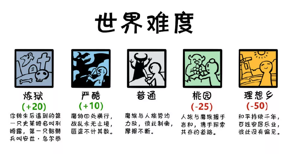不過也不用心急,不一樣的選擇也會有不同的點數消耗,手裏的30點顯然不夠「理想鄉」的選擇,在決定世界之前,你可以先考慮一下要不要繼續選擇「人類」開始自己的第二段人生,;