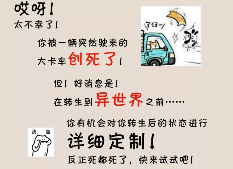 但在大多數還在猶豫的時候,大卡車可能認為已經默認了轉生的現狀,直接將你送往了另外一個世界。