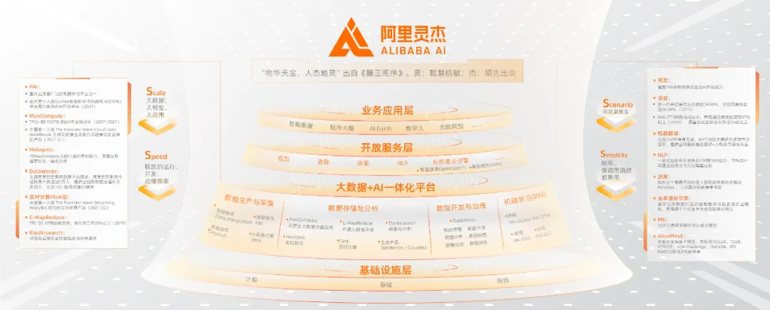 這是我們今天一直在考慮的問題。阿里靈傑解決這個問題的思路,就是讓不同的開發者們都能夠按需取用、開箱即用。從最底層的基礎產品,到中間的開發平台,到上層的開放服務,來幫助各行各業的科學家們和開發者們在雲上一起畫出人工智能增長的第二曲線。