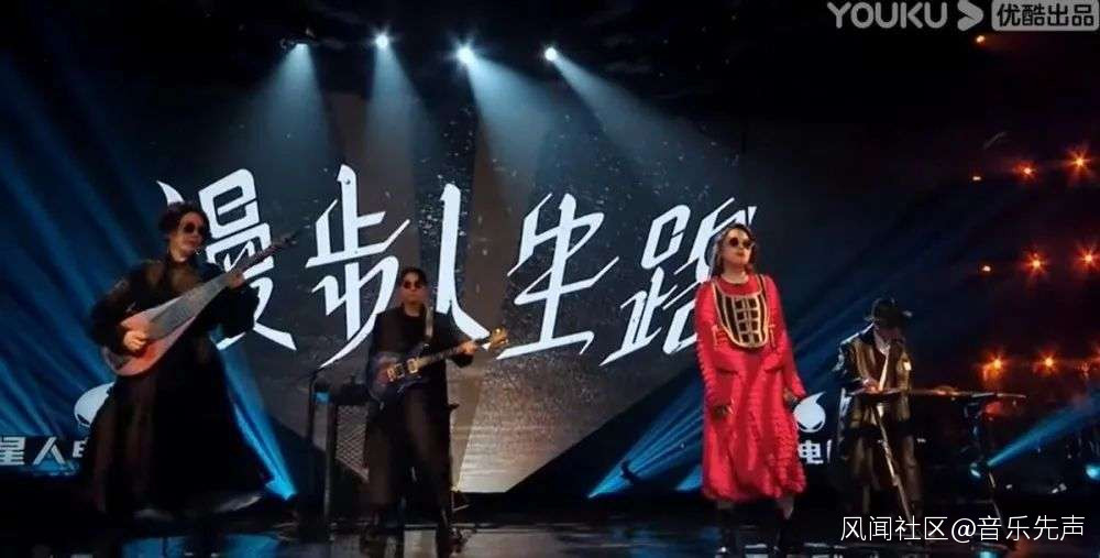 比如,裁縫鋪樂團、邢晗銘呈現的“晃到人心裏去”的港風舞台《漫步人生路》,知名樂評人耳帝如此評價:“開頭的倒放人聲以及用電古琴呈現的那段經典前奏,都迷幻風味濃郁……小號的加入營造了一片荒涼、西部、漫無止境的色彩,而幾人的舞台設計以及莫名其妙喊出的‘要開心’也增添出了一種荒誕感,有着人生荒誕無意義,活着要開心的真義。”
