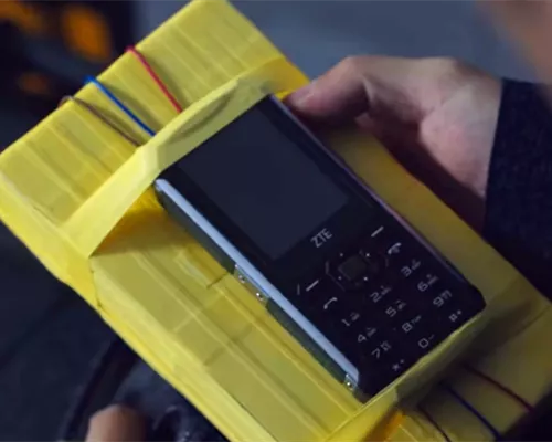 為了讓這塊香皂看起來更像炸彈一些,王志華在香皂外面包上了幾層紙,再用幾根電線隨意地纏繞在香皂上,電線兩頭全都穿過紙張插在香皂上,乍一看其實挺像個土製炸彈。