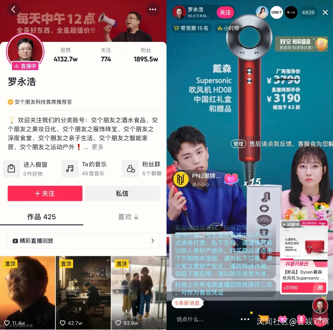 問題的關鍵在於抖音的強公域效應,根據抖音的算法機制,用户感興趣什麼商品,短視頻和直播間自動分發到滑動的屏幕上,抖音不希望“一家獨大”,導致私域流量很難完成積累用户,用户可以去淘寶直播找薇婭、李佳琦,去快手找辛巴,但羅永浩的“交個朋友”卻要經歷出道即巔峯後的落差。