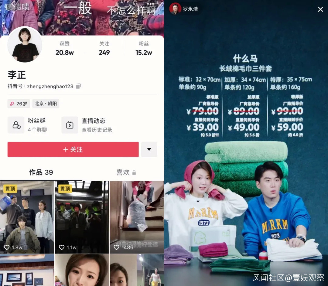 “交個朋友”直播間的主播基本都建立了自己的抖音賬號,積累了一定數量的粉絲。作為“交個朋友”直播間的首位女主播,李正同時也是選品經理,直播契機很偶然,當時“交個朋友”直播間第一次賣全棉時代的棉柔巾,缺一個模特,李正上去洗了把臉。觀眾發彈幕起鬨,“讓這個女孩來播,讓她播”。與李正相似,其他多位主播也有選品經理的工作經驗。