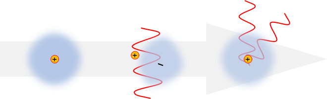 光可以視為電磁波,因為我們可以用描述電磁波的理論來描述。當光注入到介質中後會引起原子或者分子的正負電中心分離,並且隨着光的週期性波動而受迫振動。我們稱為正負電中心分離的原子或分子為偶極子,它們發生的受迫振動即為偶極振動。偶極振動會產生交變的電磁場,又向四面八方均勻地發出散射光。