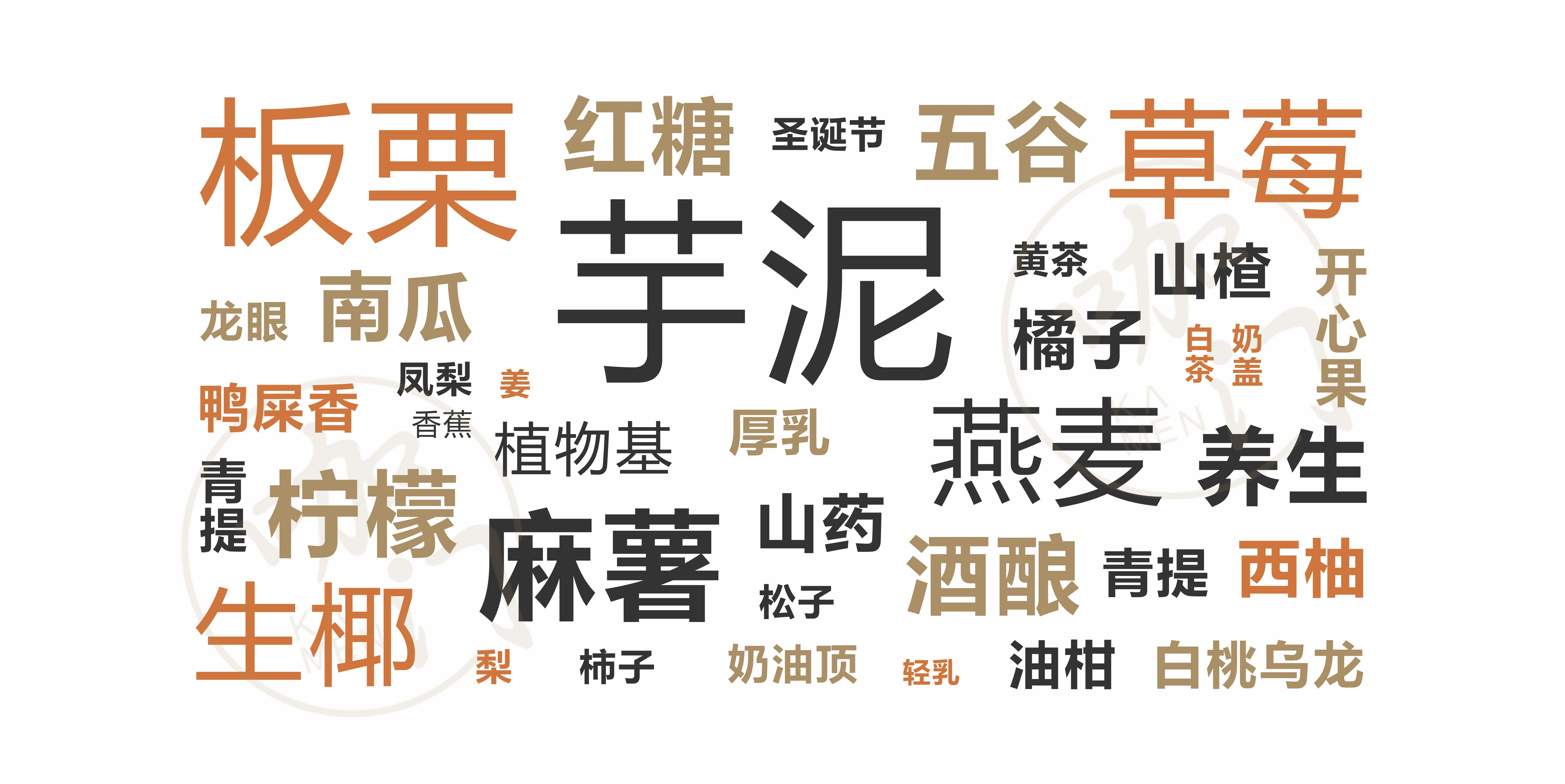 雅克雅思的好柿成霜,取了柿子的諧音,再將“雙”諧音成“霜”,有芝士奶霜的含義,心想柿橙則指向心想事成。