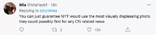 在“推特”上,包括不少美國人在內的諸多外國網民,也同樣吐槽《紐約時報》的配圖,有的認為《紐約時報》的編輯記者“沒品味”;有的認為《紐約時報》的配圖是在打消人們打疫苗的積極性,給全世界的疫苗接種工作添亂;還有的人亦表示這家美國媒體就是故意選的這張圖,為的就是要抹黑中國。