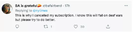 一些《紐約時報》的讀者甚至選擇通過“取消訂閲”的方式抗議起了該報這種極為低級的做法。