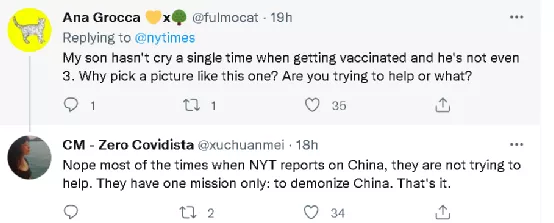 其中,在“臉譜網”上,不少外國網民就表示這樣的圖片只會打消他們給孩子打疫苗的念頭。有人則直接斥責起了《紐約時報》的圖片選擇,稱這樣的圖片是在妖魔化兒童的疫苗接種工作,這必然會給許多國家的疫苗接種帶來巨大的困擾。有人更表示《紐約時報》的這種做法就是為了抹黑中國,給美國等防疫失敗的西方國家轉移矛盾。