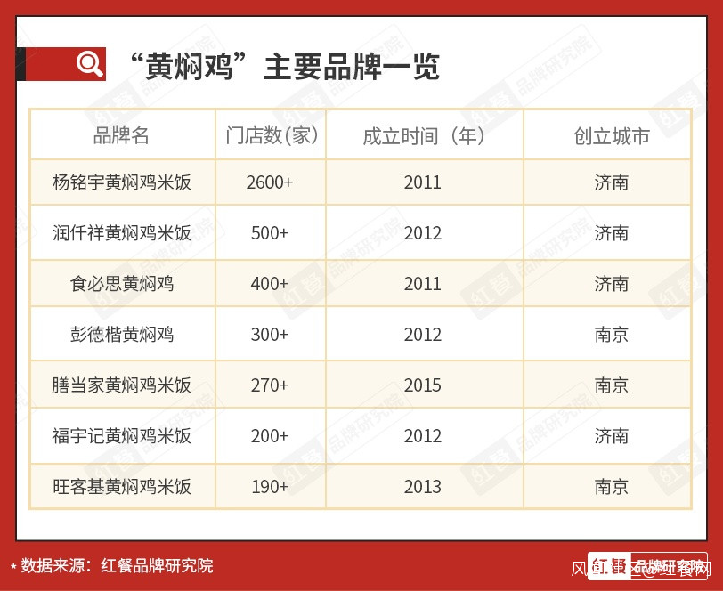 倒是楊銘宇,一直堅持只賣黃燜雞一道菜。前兩年採訪的時候,很多加盟商對此怨聲載道,但放在如今來看,也是明智之舉,因為楊銘宇用它的定力成就了黃燜雞品類的代名詞,至今它的門店數量仍是品類第一,而且短時間內無人能撼動。