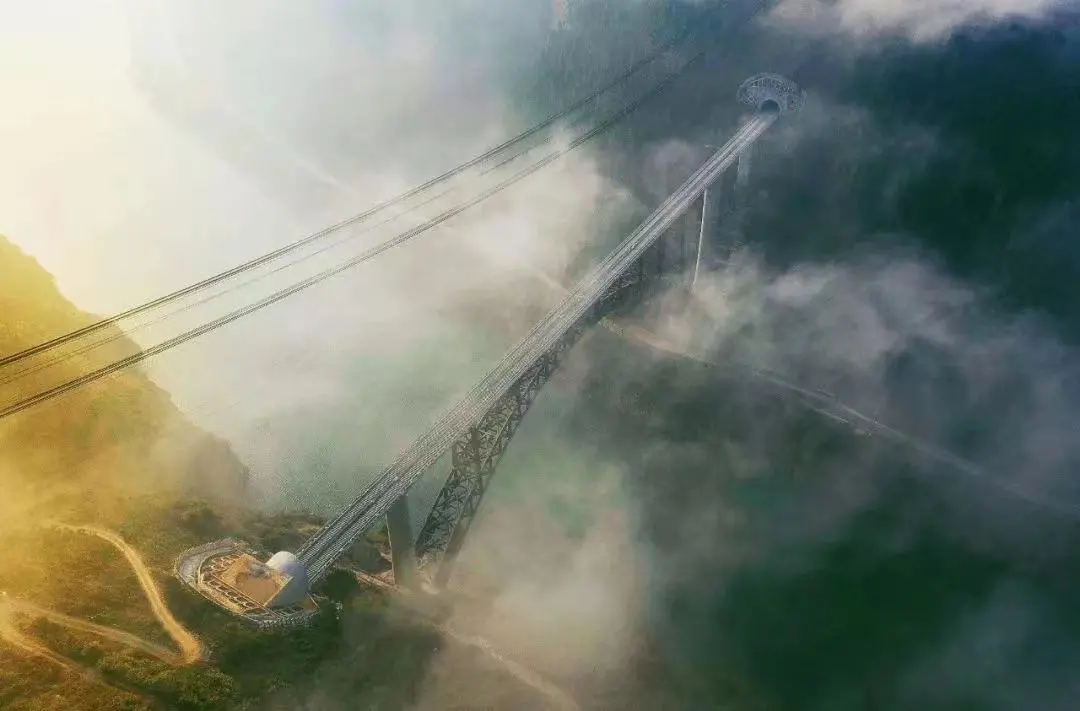 張吉懷高鐵,全線新建橋樑162座57.8公里、隧道118座166.1公里,總長223.9公里,佔線路全長90.7%(橋隧比),平地上的線路不到10%,重難點工程有“8路13橋37隧”。縱觀全線,車站、隧道和橋樑基本都建在大山間、懸崖邊、田野上,是名副其實的“雲端高鐵”。