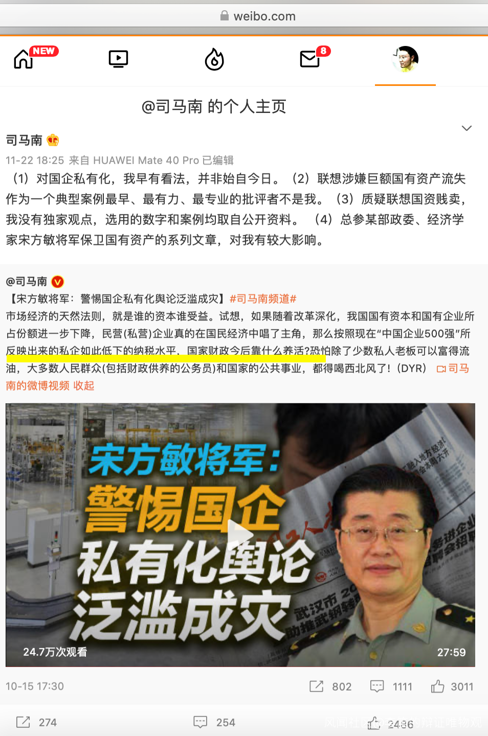 2,新浪微博用户“司馬南”發佈的相關內容https://weibo.com/u/1263406744