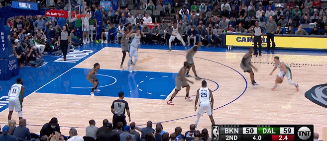 獨行俠的進攻就這麼被籃網停下來了,籃網藉此打出了一些反擊。米爾斯本場投進的第一記三分,就是哈登推轉換過程中傳給他的。