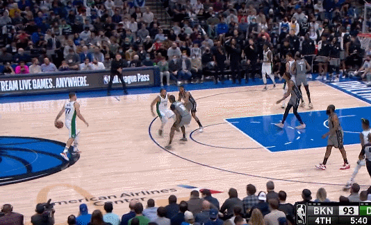 第四節5分40秒,籃網反超比分之後,東契奇投進了他本場的最後一記三分重新領先籃網,這記三分的根源就是布朗森來給東契奇掩護,詹姆斯-約翰遜以為要換防,就順勢跟着布朗森往下走。