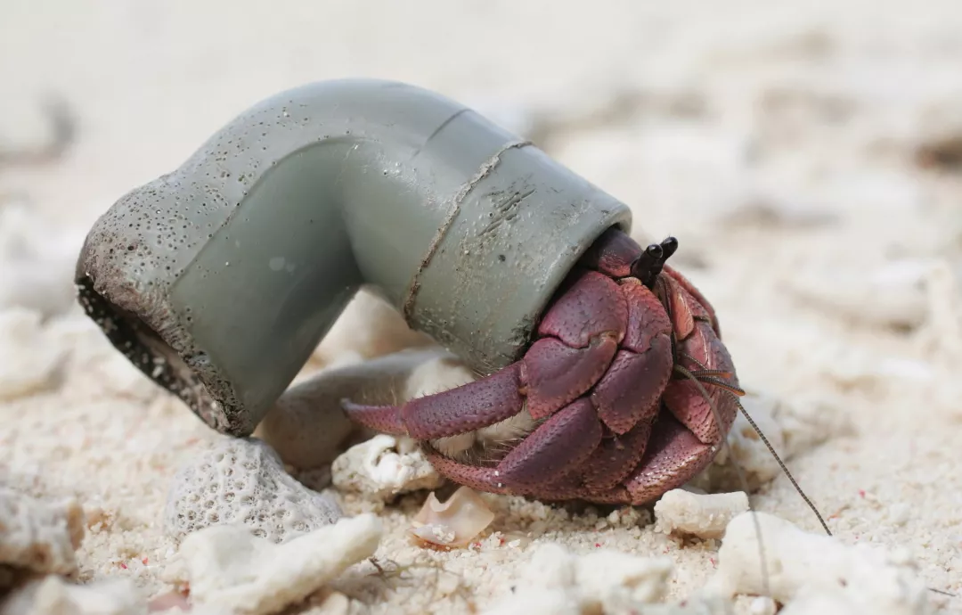 人類憑一己之力拉大了寄居蟹的貧富差距。他們一邊撿走海灘上的螺殼,一邊又源源不斷地向海灘輸送塑料垃圾。