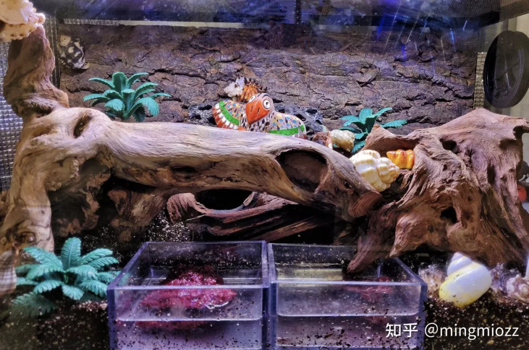 除了換殼是最大投資和樂趣以外,給蟹仔置辦豪華的唐頓莊園也是重中之重。飼養的寄居蟹可以分成陸生寄居蟹和海生寄居蟹兩種,其中陸生被飼養的格外多,但不論哪種,都需要精心的照料。悉心控制温度、濕度,擺放躲避掩體和攀爬用物體,備齊淡水盆和海水盆等等,以免你的小傢伙死翹翹。