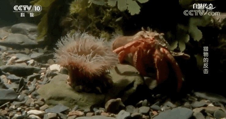 平時沒事散步時,它們就會把巖面上附着的海葵撿走安在自己殼上,充當門禁。