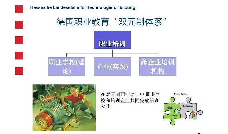 德國的人才教育體系,對實踐與基礎工作格外重視,他們的秘密武器就是著名的“雙元制”:即德國學生在學習期間一面在企業接受培訓,一面在職業學校接受理論教育。