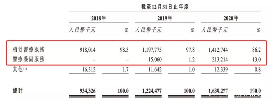 按照收入結構來看,雍禾醫療的主要收入來源是提供植髮醫療服務,雍禾瞄準着“禿頭”的程序員和金融民工等人,雖然做到了全國第一,營收也達到了20億,但放在整個醫療市場而言,仍不是巨頭。