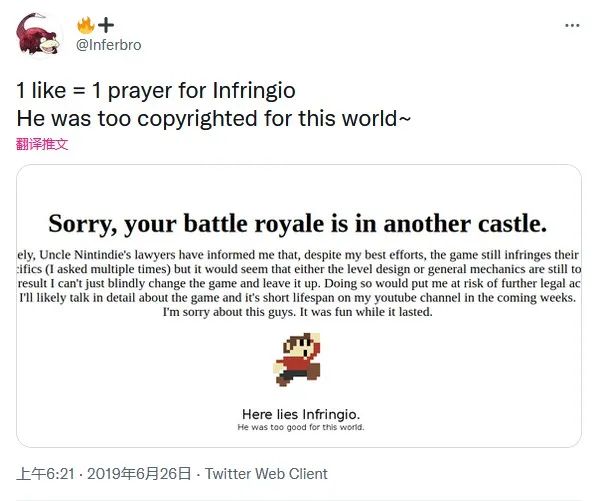 在和任天堂法務部門數次交鋒後,《馬力歐大逃殺》的作者依依不捨地宣告了遊戲的“死亡”